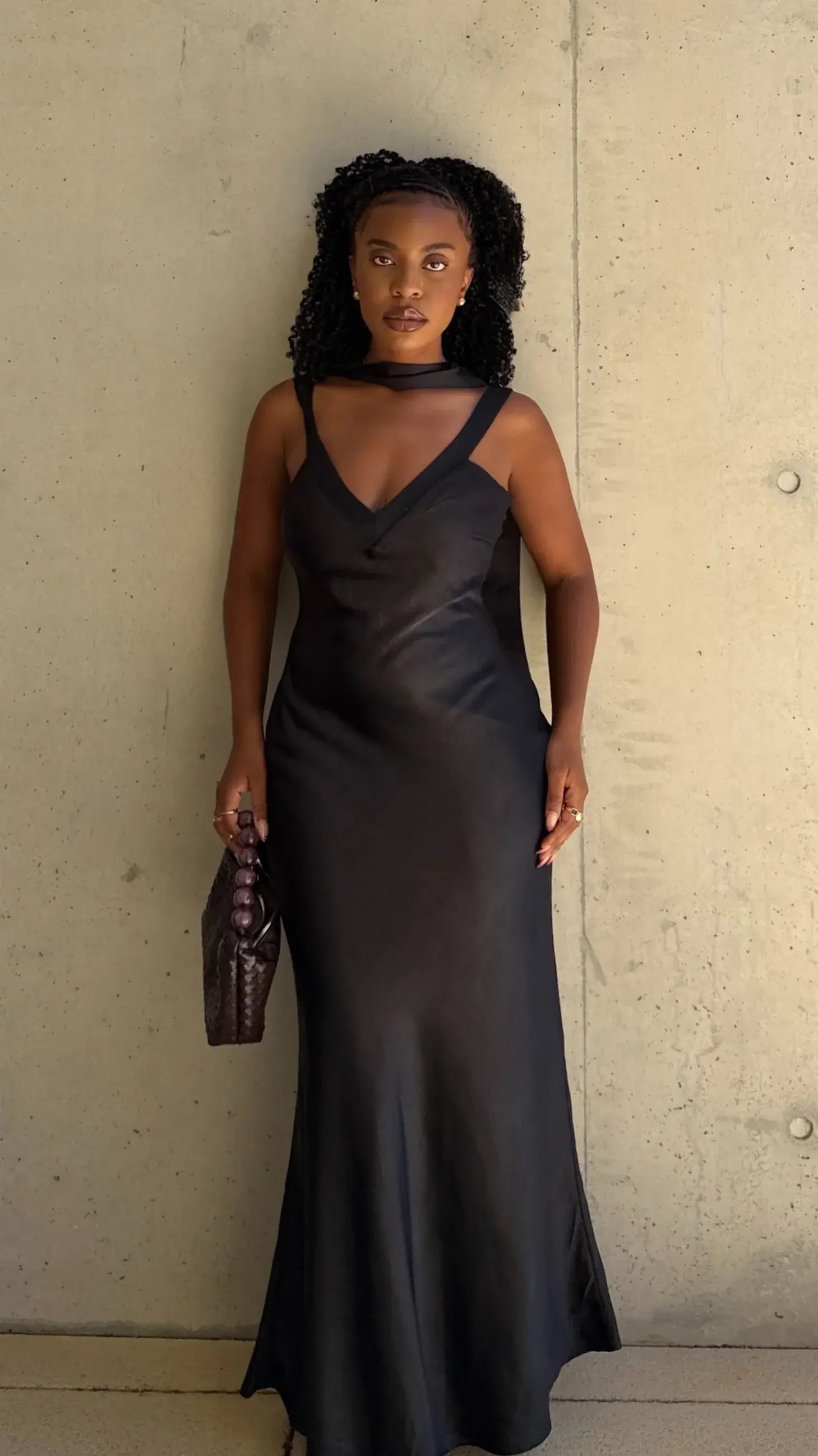 The Andie Maxi Dress combines timeless elegance with thoughtful design details. This sophisticated piece features a flattering V neckline and triangular bust construction, anchored by wide fixed straps for comfortable support. An invisible side zipper ensures a seamless silhouette, while the low scoop back with delicate cross detailing adds an unexpected touch of refinement. Fully lined for confidence and comfort, this dress transitions effortlessly from evening events to special occasions.